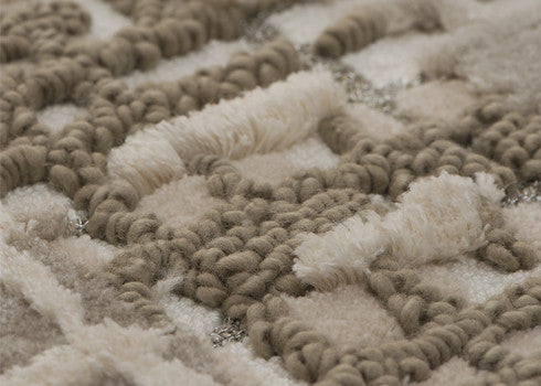 Composition of yarn : 17.1% Berber Wool, 10.5% Wool, 26.8% Silk, 16.6% Lacet Cotton, 29% Cotton Backing